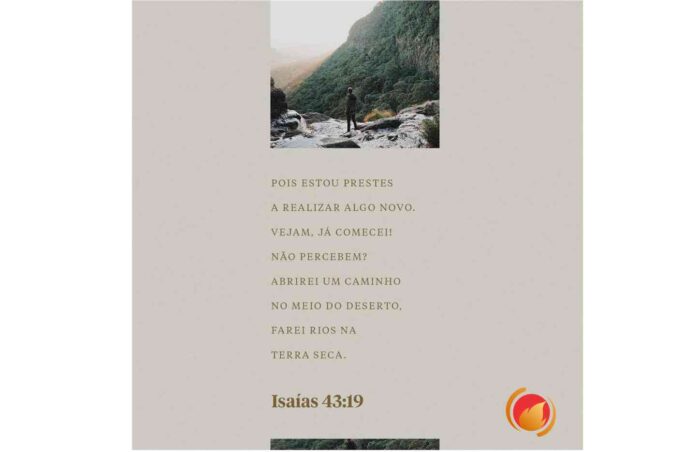 ¹⁹ Eis que faço uma coisa nova, agora sairá à luz; porventura não a percebeis? Eis que porei um caminho no deserto, e rios no ermo.