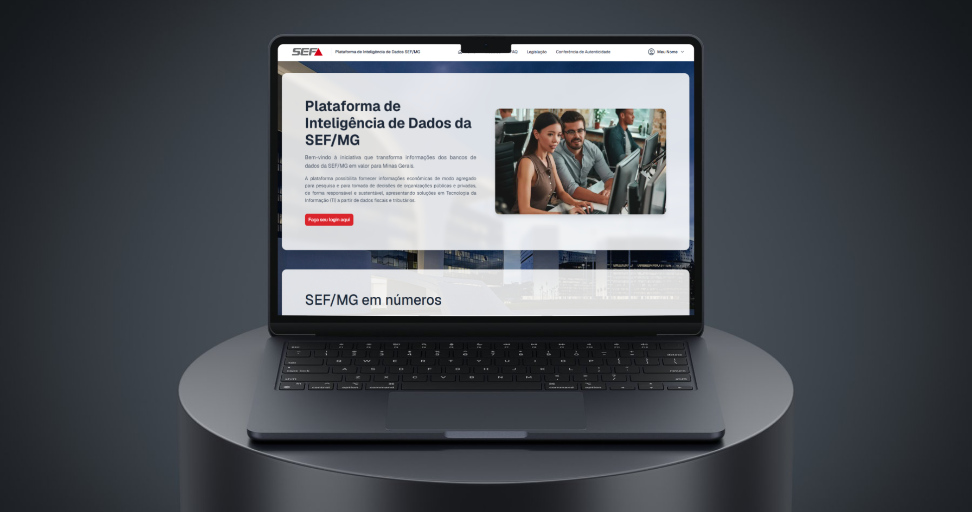 A Plataforma Inteligência de Dados pode ser acessada pela página principal da SEF ou diretamente pelo endereço https://plataformadeinteligenciadedados.fazenda.mg.gov.br/.